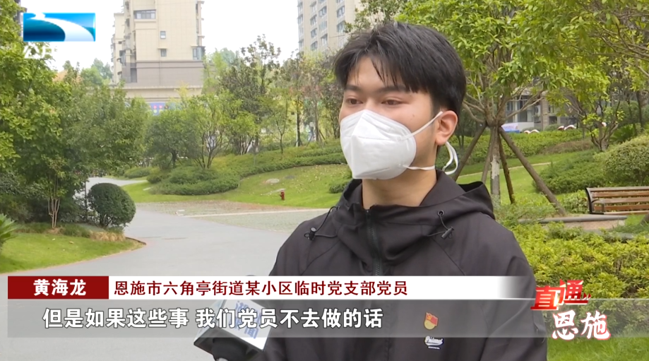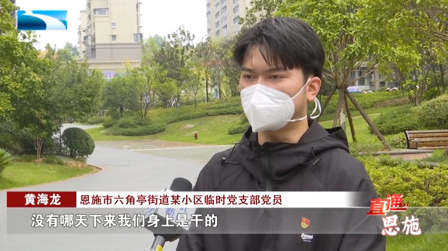 恩施市六角亭街道某小区临时党支部党员 黄海龙:“有时候我肯定也怕,但是这些事我们党员不去做的话,这个疫情就没有办法控制下来。”
