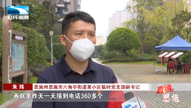 恩施州恩施市六角亭街道某小区临时党支部副书记 朱玮:“凌晨5点才把最后一个居民,送到隔离酒店进行转运,一天接到电话360多个,今天早上6点钟起来,又进行核酸采集总的调度工作,所以只睡了一个小时。”