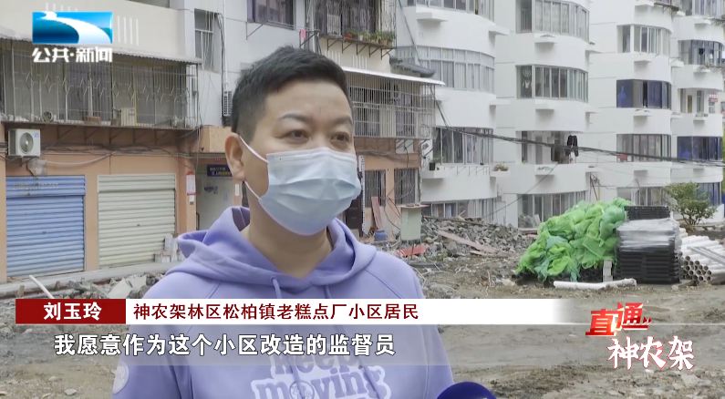 神农架林区松柏镇老糕点厂小区居民 刘玉玲:“我愿意作为这个小区改造的监督员,协助这个工程尽快地完成,我每天就看着这个工程的进度还是蛮快的。”