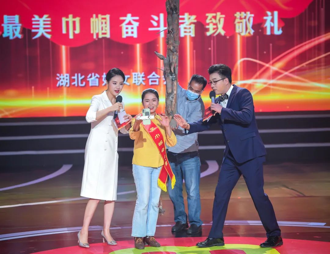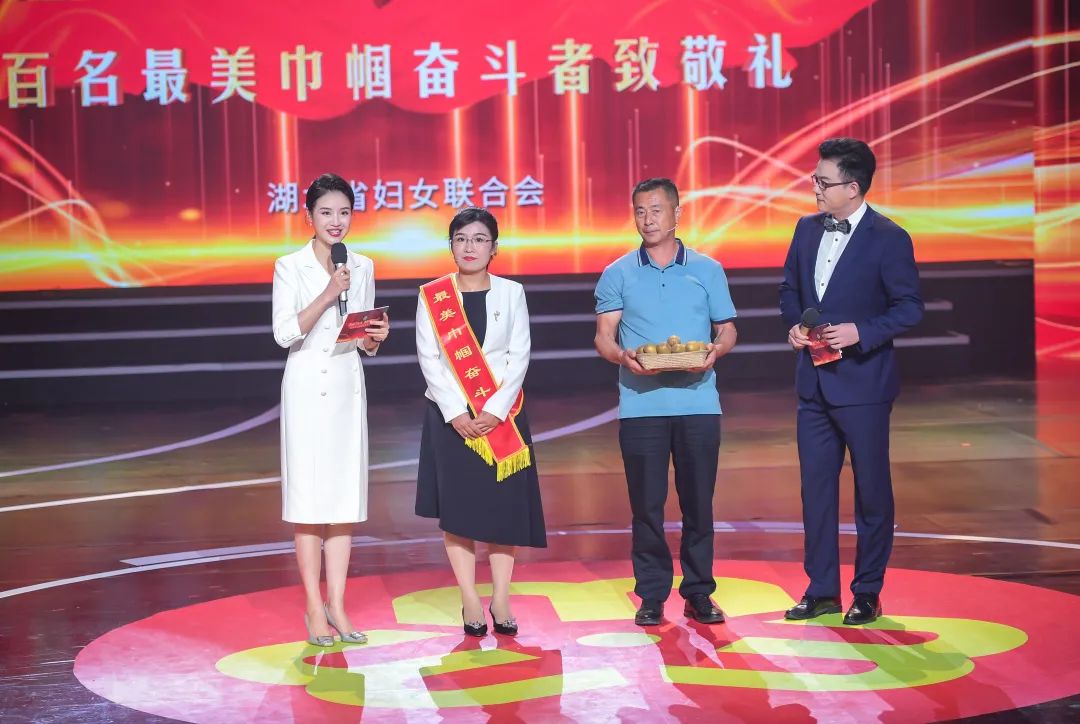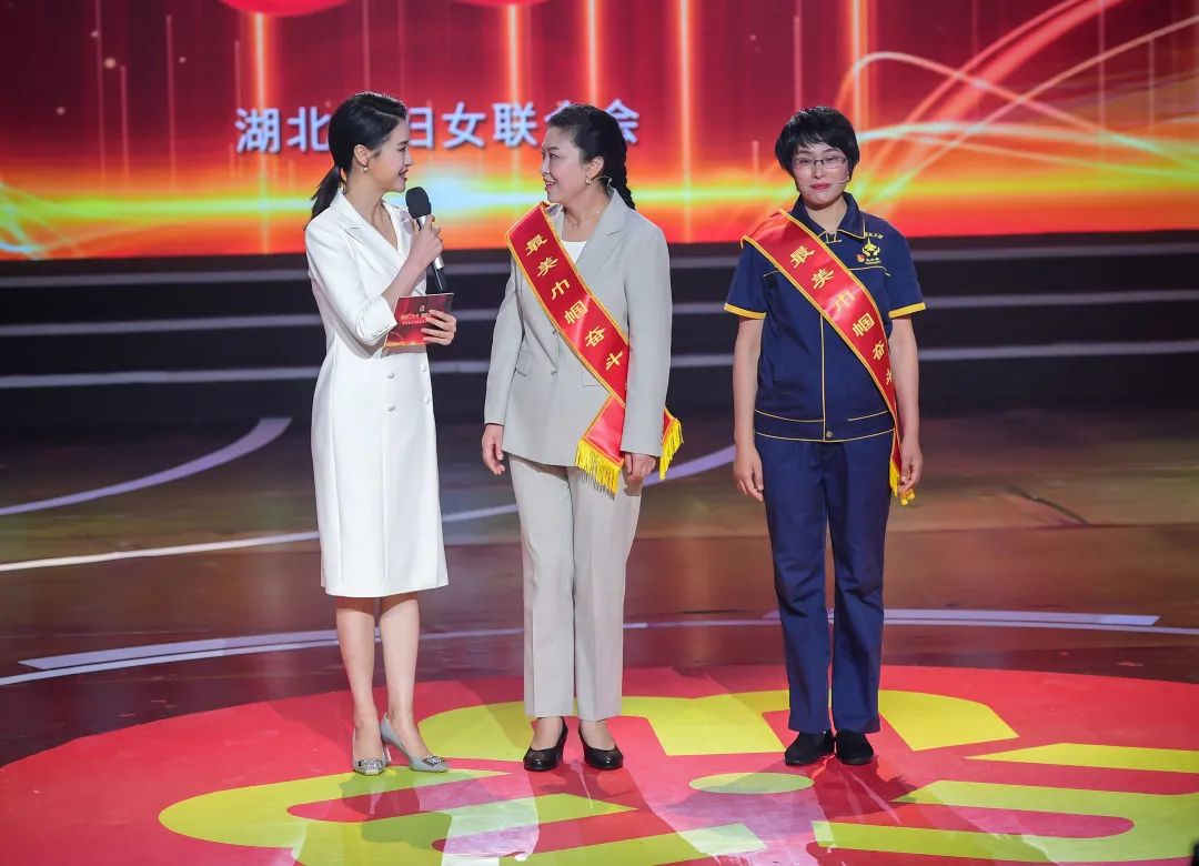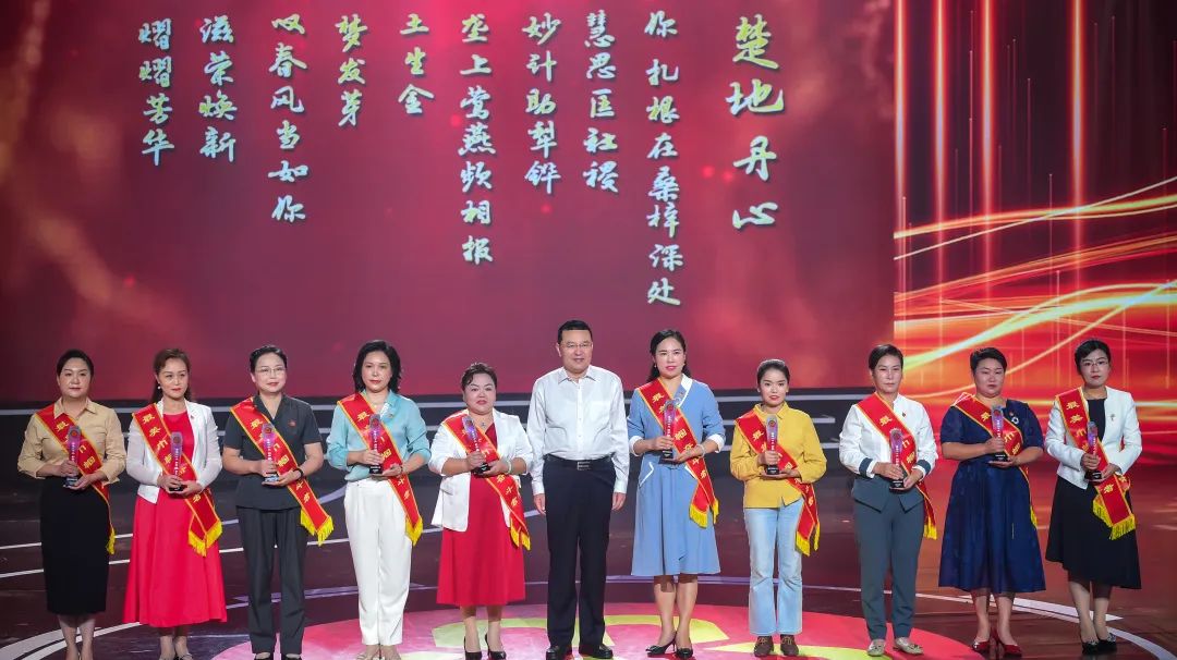 大会现场向荣获“楚地丹心”奖“最美巾帼奋斗者”中的十位代表颁发奖杯。