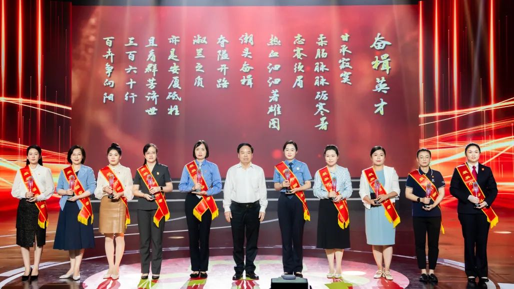 大会现场向荣获“奋楫英才”奖“最美巾帼奋斗者”中的十位代表颁发奖杯。