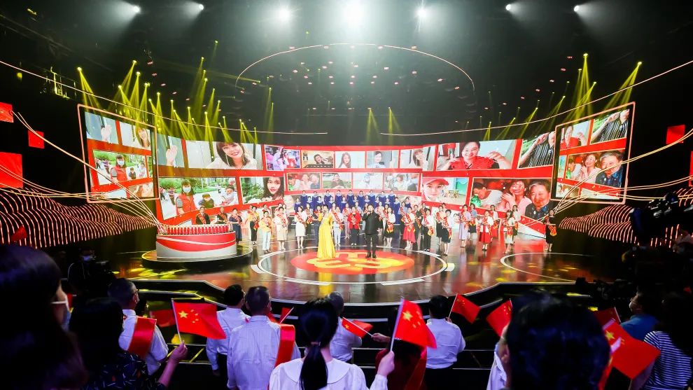“伟大的中国共产党乘风破浪、扬帆远航,领航中国在新时代的征程上......”全体人员起立,挥动手中的五星红旗,饱含深情齐声高唱《领航》,大家用歌声致敬每一个用热忱点亮前路的巾帼榜样。在歌声中致敬礼落下帷幕,热烈掌声经久不息,歌声和掌声汇成欢乐的海洋,气氛被推向高潮。