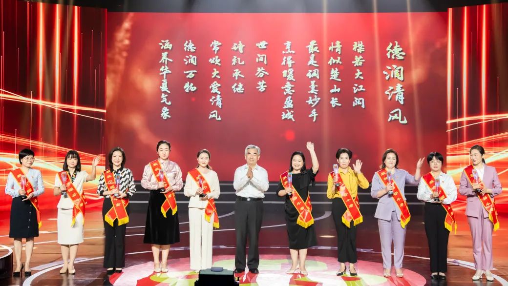 大会现场向荣获“德润清风”奖“最美巾帼奋斗者”中的十位代表颁发奖杯。