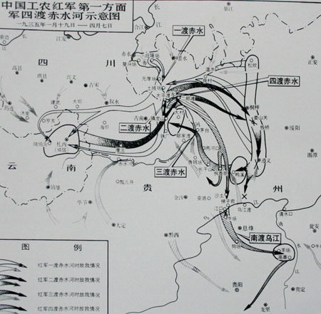 接着,红军大摇大摆三渡赤水,摆出要北渡长江的架势,把国民党重兵诱至川南,自己却“秘密、迅速、坚决出敌不备”四渡赤水,日夜兼程,南渡乌江,跳出合围圈。接着,佯攻贵阳、调动滇军,西进云南、威逼昆明,巧渡金沙江,彻底甩掉几十万敌军。