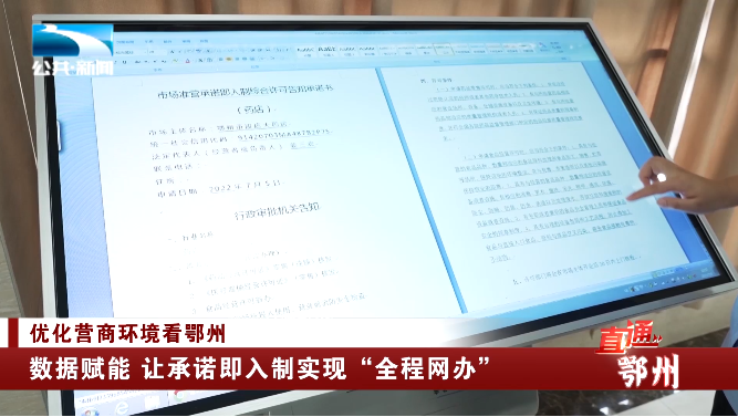 鄂州市华容区大数据服务中心主任 郑帅:“刚刚那个汪老板有了一个营业执照,但还需要一个许可证,他只需要填写一张承诺书,承诺店面满足许可条件,当天就可以准许他进行营业。”