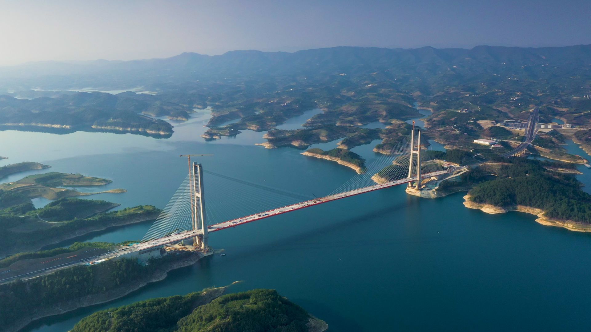 从对称变到不对称,大桥用世界第一的技术,为水库留住了40万方绿油油的青山。