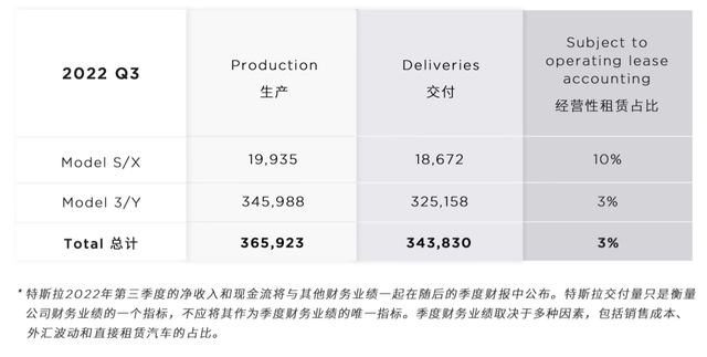 第三季度生产及交付数据,图片来源:特斯拉中国