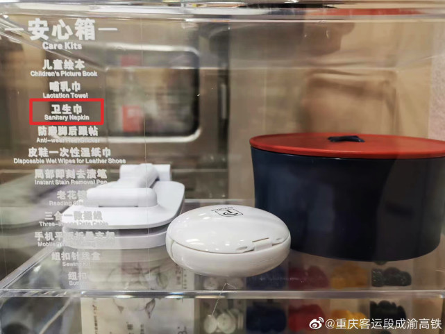 该乘客表示,她是在餐车车厢售货处购买到的卫生巾,乘务员告诉她是当天开始售卖的,不过备货只有一包。“可能也是试水,看是不是确实有需求。”该乘客说。记者从中国铁路上海局了解到,目前上海局管内部分列车已开始售卖卫生巾。上述提到的售卖卫生巾的D3135次列车,就是所属中国铁路上海局,从南京南开往赣州,途径上海、杭州、福州、厦门等地。12306客服表示,之前有旅客反馈过相关问题,他们已向上级进行建议,但目前还没有接到已全面开售卫生巾的通知。客服人员建议,如果在列车上临时有需求,可向乘务员寻求帮助,列车工作人员一般都会准备这些应急物资。实际上,在卫生巾话题引发广泛讨论之前,部分列车就已将卫生巾作为应急用品常备。@重庆客运段成渝高铁 官方微博2021年9月发布的消息就显示,列车上常备的安心箱内就已放置了卫生巾。安心箱内还有哺乳巾、老花镜、数据线、针线盒等用品。