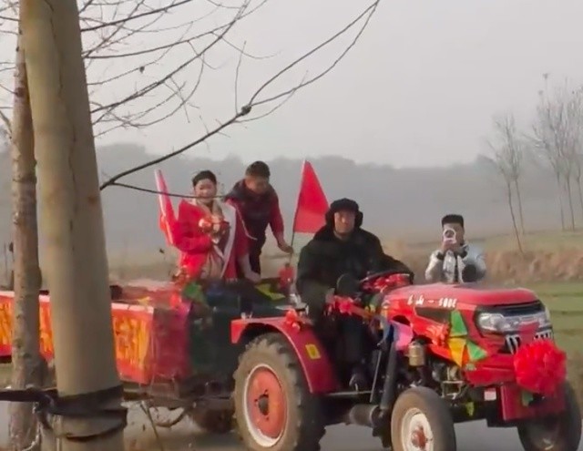 不过,这也不是第一次有人结婚用拖拉机当婚车了。2021年11月18日,山东农村小伙李先生用8台拖拉机组成迎亲车队迎接新娘,李先生表示,想体验一下父辈时代结婚时的氛围,图个热闹。