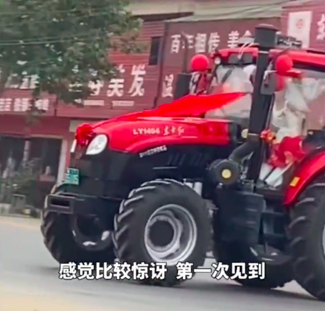 10月3日,河南驻马店,一对新人结婚用拖拉机当婚车,引发网友关注。