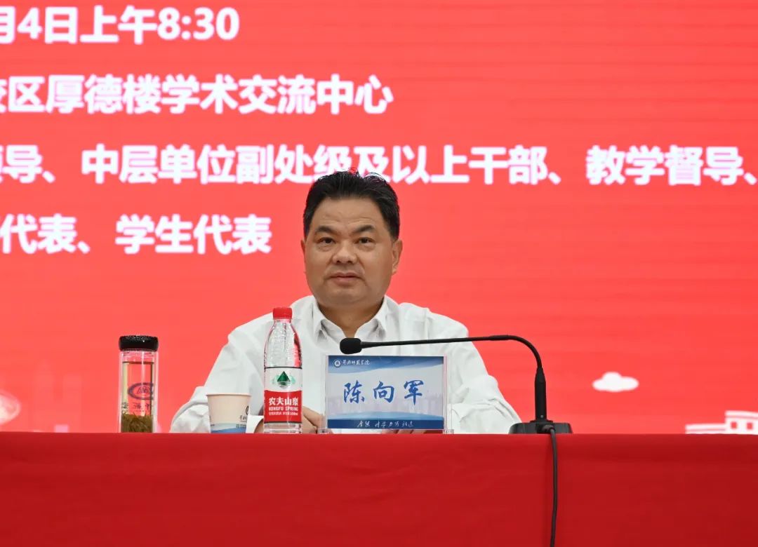 陈向军介绍了黄冈师范学院近年来在推动本科教育教学改革创新,构建具有黄冈师范学院特色的一流本科人才培养体系,促进本科人才培养质量持续提升等方面取得的成绩。