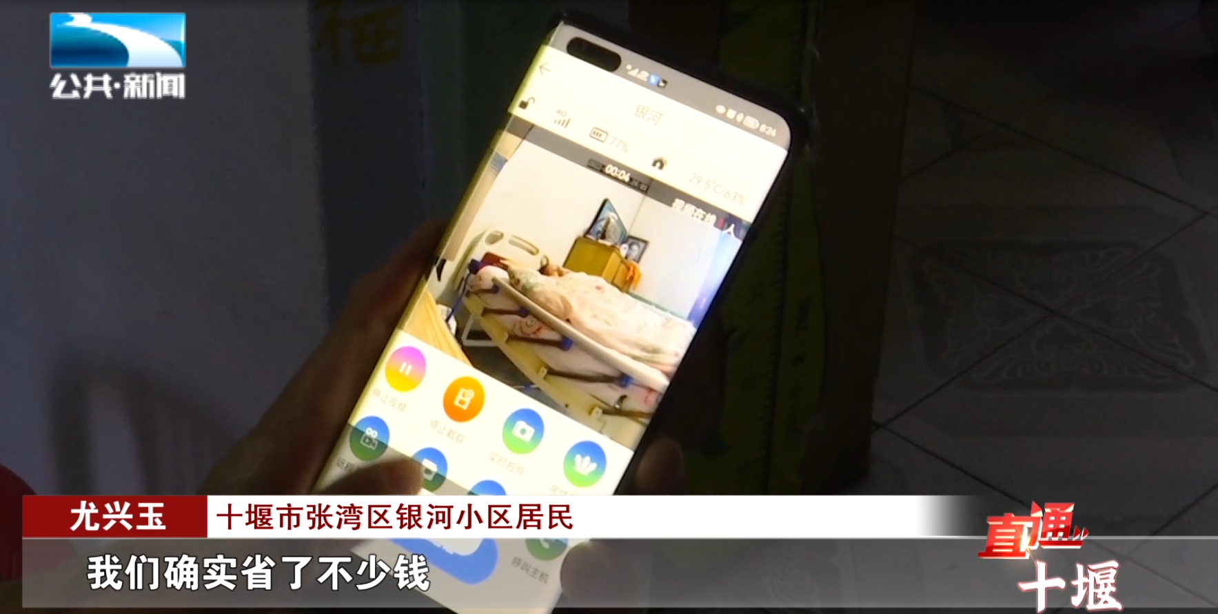 十堰市张湾区银河小区居民 尤兴玉:“相比较过去,现在非常智能化,随时随地都能看到老年人在家里的状况,而且相比于养老院,我们确实省了不少钱。”