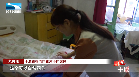 十堰市张湾区银河小区居民 尤兴玉:“这个可以自动调节,你看这个软的是个气垫,是循环的,上下左右前后都可以翻动。”