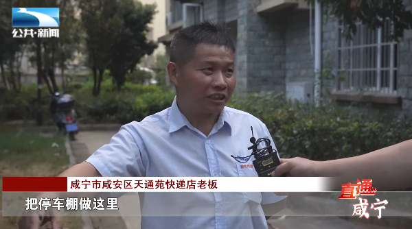 咸宁市咸安区天通苑 快递店老板:“把停车棚做这里,我没法做生意了,每天送快递的车没地方停了。”