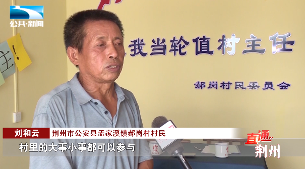 荆州市公安县孟家溪镇郝岗村村民 刘和云:“我们村人人都有机会当村主任,村里的大事小事都可以参与,大家的责任心越来越强,把村里的事当成自己的事,共同打造我们美好的生活。”
