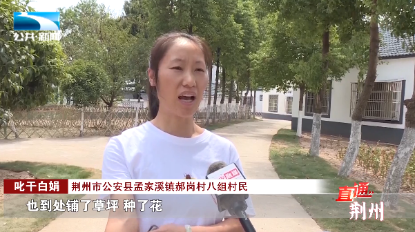 荆州市公安县孟家溪镇郝岗村八组村民 叱干白娟:“路也修好了,也到处铺了草坪,种了花,我们这边有荷花池,都是可以散步 可以参观,让人心情很舒服。”