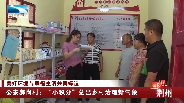 荆州市公安县孟家溪镇郝岗村党支部副书记 王军:“积极参与美丽乡村建设,环境整治等方面活动,一次记十分;还比如说邻里和睦、团结友爱的,一次记五分;热心帮助困难群众的、调解邻里纠纷的,一次记十分;满六十分就可以兑换物品。”