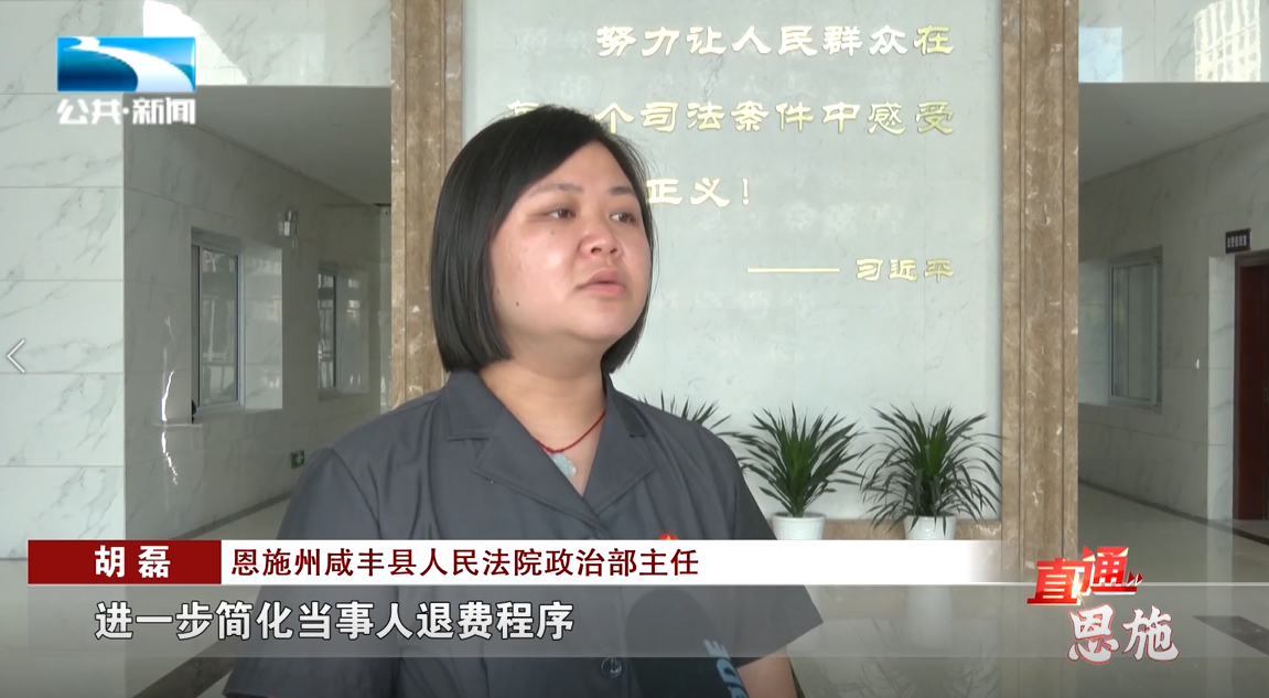 恩施州咸丰县人民法院政治部主任 胡磊:“进一步简化当事人退费程序,全力追缴败诉方未缴纳诉讼费用,目前退费时间明显缩短,诉讼成本显著降低。”