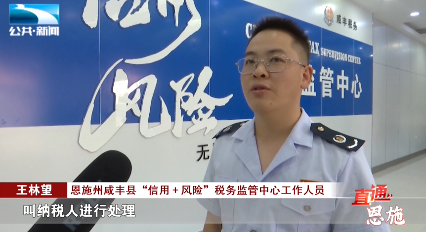 恩施州咸丰县信用+风险”税务监管中心工作人员 王林望 :“经过我们专业化团队,对这里面的数据进行分析,如果分析出来有风险的话,我们会进行推送,推送到我们的风险分局进行处理,风险分局接受任务后,它会通过电子税务局以及电话的形式等,非接触办税的形式,叫纳税人进行处理。”