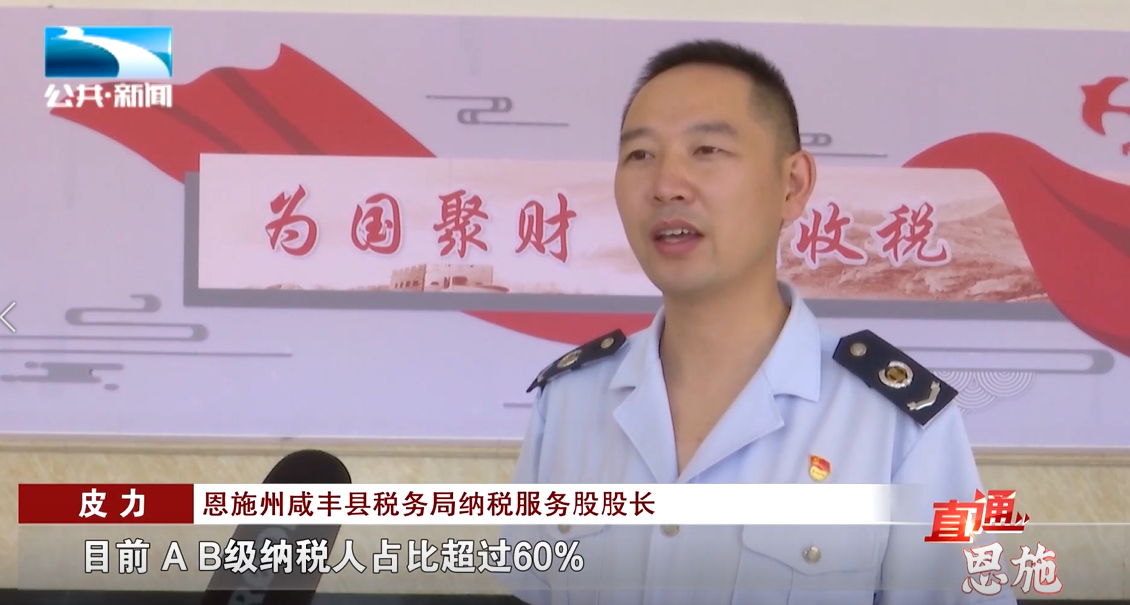 恩施州咸丰县税务局纳税服务股股长 皮力:“目前,A、B级纳税人占比超过60%,全县非接触式办税率超过98%,直接为纳税人减少征纳成本200多万元。”