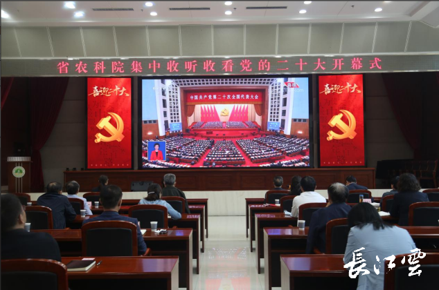 10月16日上午,中国共产党第二十次全国代表大会在北京人民大会堂隆重开幕,习近平代表第十九届中央委员会向大会作报告。湖北省农科院组织院属各单位党员干部、农业科技工作者和离退休老同志以电视、广播、网络等多种方式认真收听收看大会盛况。