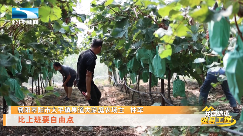襄阳枣阳市太平镇果道夫家庭农场主 林军:“(每年)赚个五六十万,七八十万,比上班要自由点,这是重要的一点。”