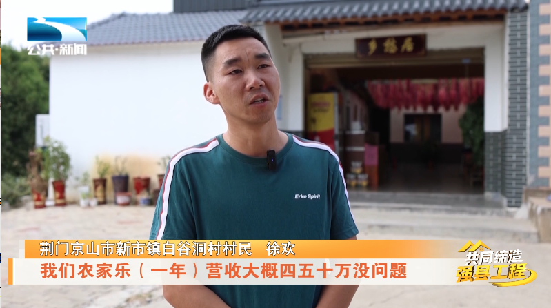 荆门京山市新市镇白谷洞村村民 徐欢:“生意好的情况下,我们农家乐(一年)营收大概四五十万没问题。在家门口你能挣到钱,你和你的家人在一起,家乡这么美丽,何必离开呢?”