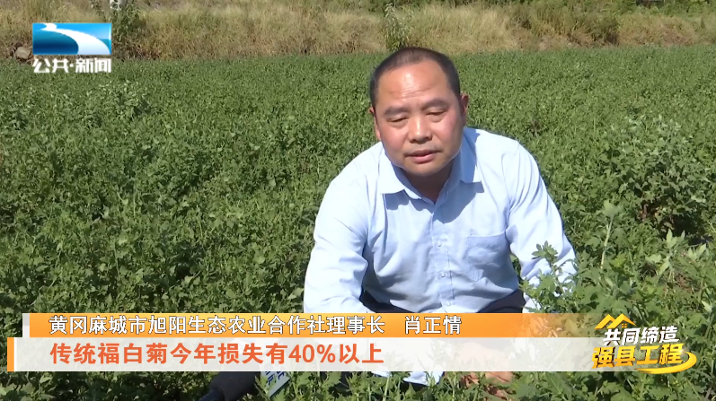 黄冈麻城市旭阳生态农业合作社理事长 肖正情:“(预计)今年黄金菊的收成还可以,亩产能够达到五六千。因为它比起传统福白菊抗涝一些,抗旱一些,传统福白菊今年损失有40%以上。”