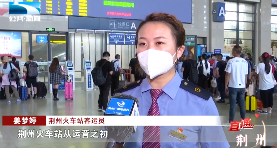 荆州火车站客运员 姜梦婷:“荆州火车站从运营之初,日均客流不到8000人次,上升到目前1.7万余人次,据我们统计,开通十年来,荆州火车站运送旅客已超过4700万人次。”