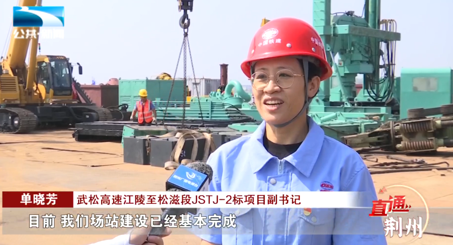 武松高速江陵至松滋段JSTJ-2标项目副书记 单晓芳:“目前,我们场站建设已经基本完成,然后主线栈桥的平台及钻孔平台施工已经全部结束,钻机设备已进场,钢筋厂和拌合站已经全部建设完成。”
