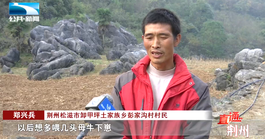 荆州松滋市卸甲坪土家族乡彭家沟村村民 郑兴兵:“以后想多喂几头母牛下崽,想把生活提高。”