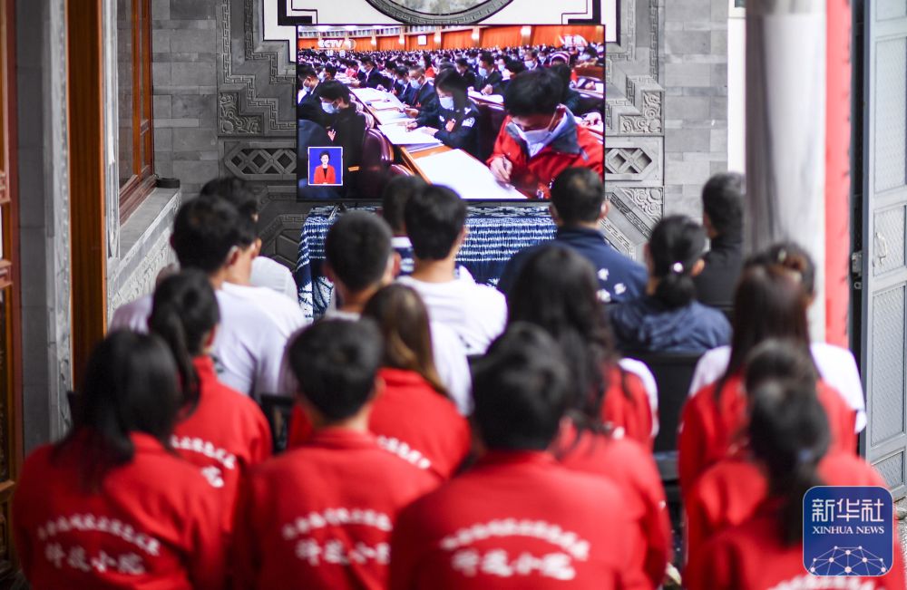 10月16日,在云南省大理白族自治州大理市白族传统村落古生村,中国农业大学、云南农业大学等高校的老师、学生和村民在村中科技小院内收看中国共产党第二十次全国代表大会开幕会。新华社记者 江文耀 摄