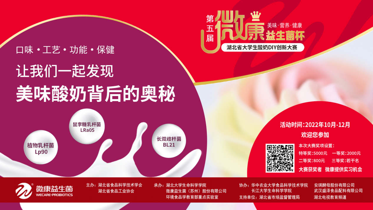 该项赛事由湖北省食品科学技术学会、湖北省食品工业协会主办,湖北大学生命科学学院、微康益生菌(苏州)股份有限公司以及环境食品学教育部重点实验室联合承办,旨在践行“健康中国”战略,鼓励大学生积极创新和开发健康、营养、美味的食品,为健康中国贡献力量。