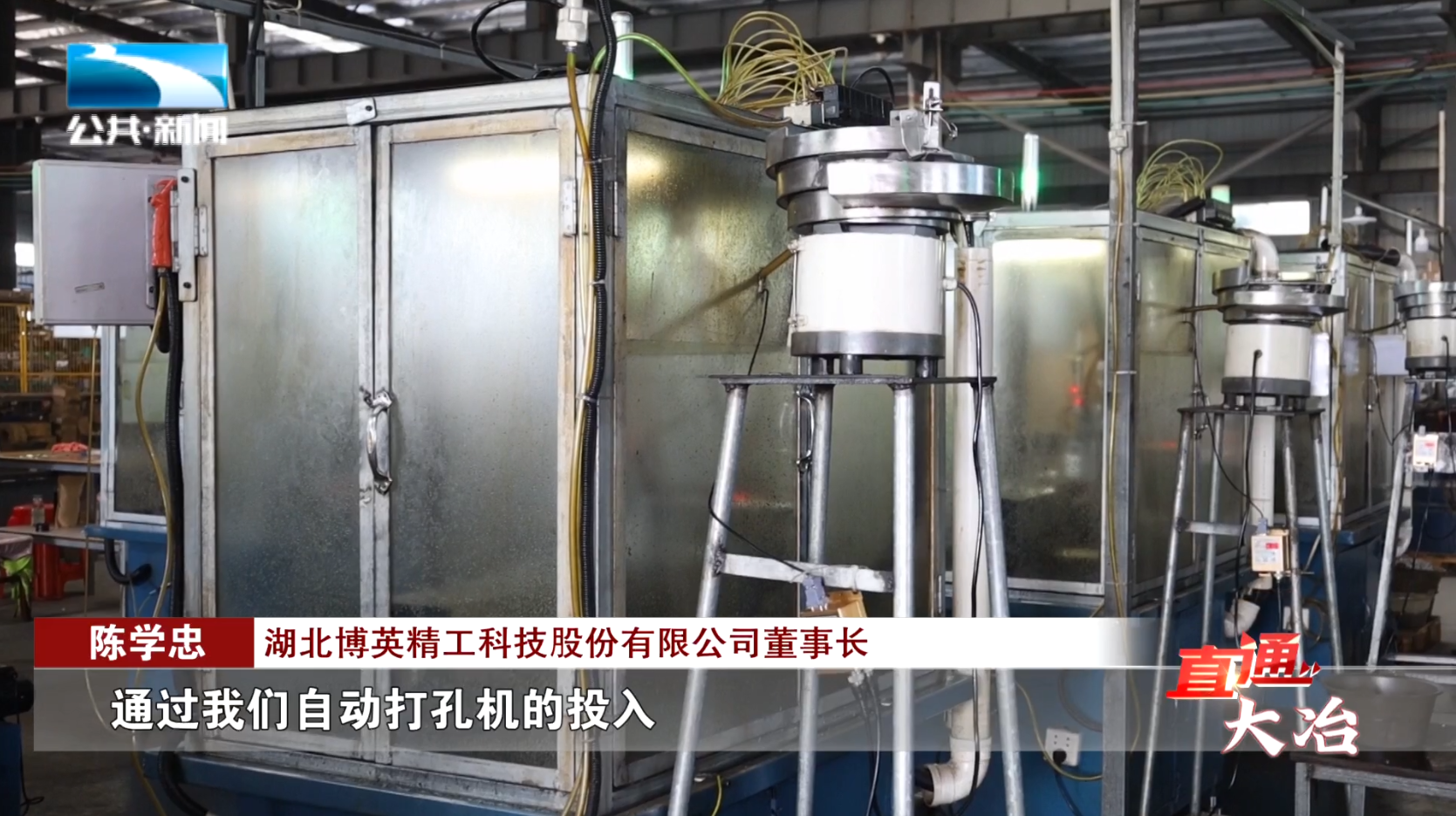 湖北博英精工科技股份有限公司董事长 陈学忠:“用手工打孔,每一个孔的生产成本可能在六分钱左右,通过我们自动打孔机的投入,我们的生产成本能够控制在,每个孔不到两分钱。”
