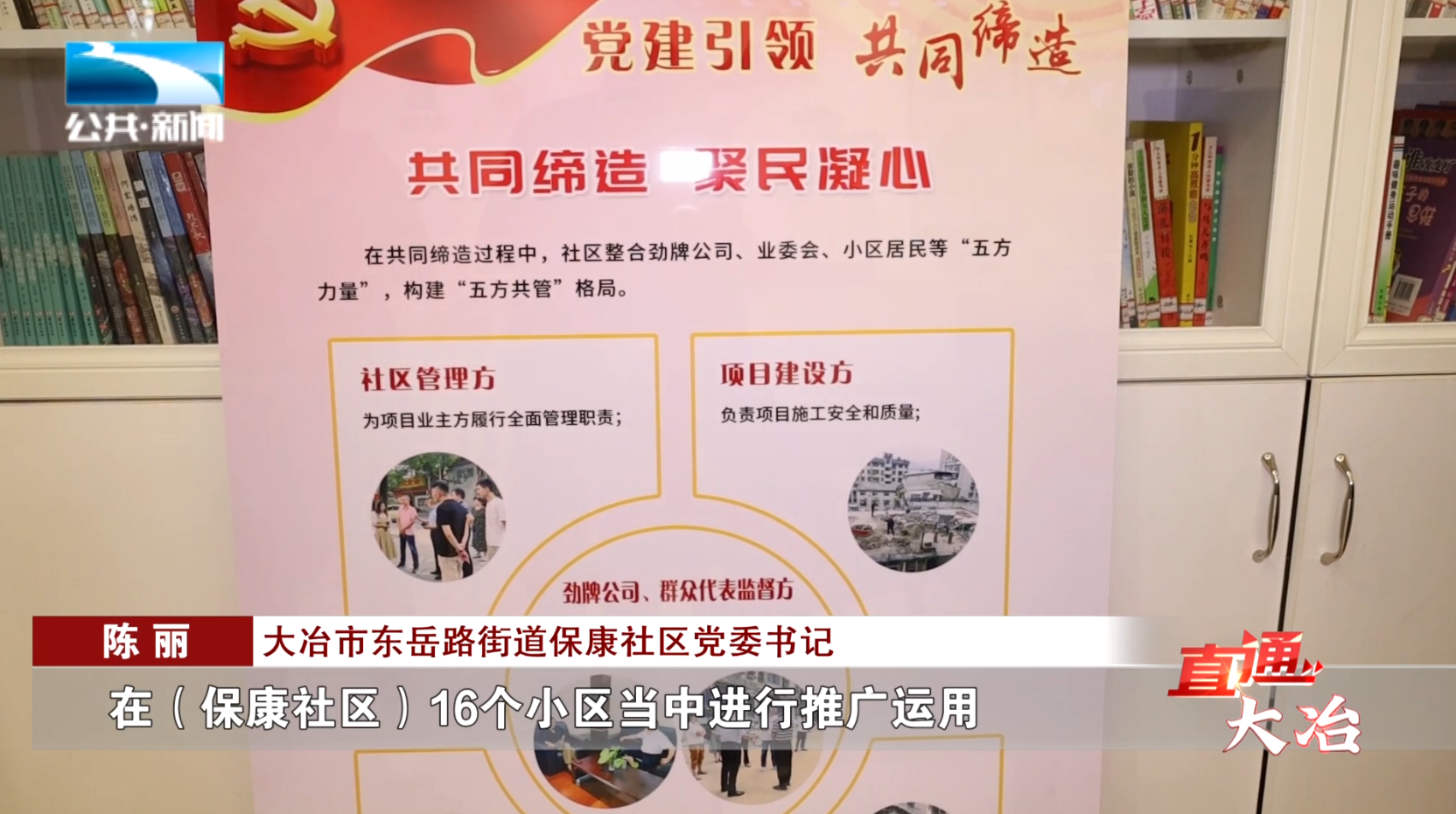 大冶市东岳路街道保康社区党委书记 陈丽:“我们已经把劲牌小区五方共管的机制在保康社区16个小区当中进行推广运用,这样就能保证小区改造的质量过关,真正地实现居民愿景落地。”