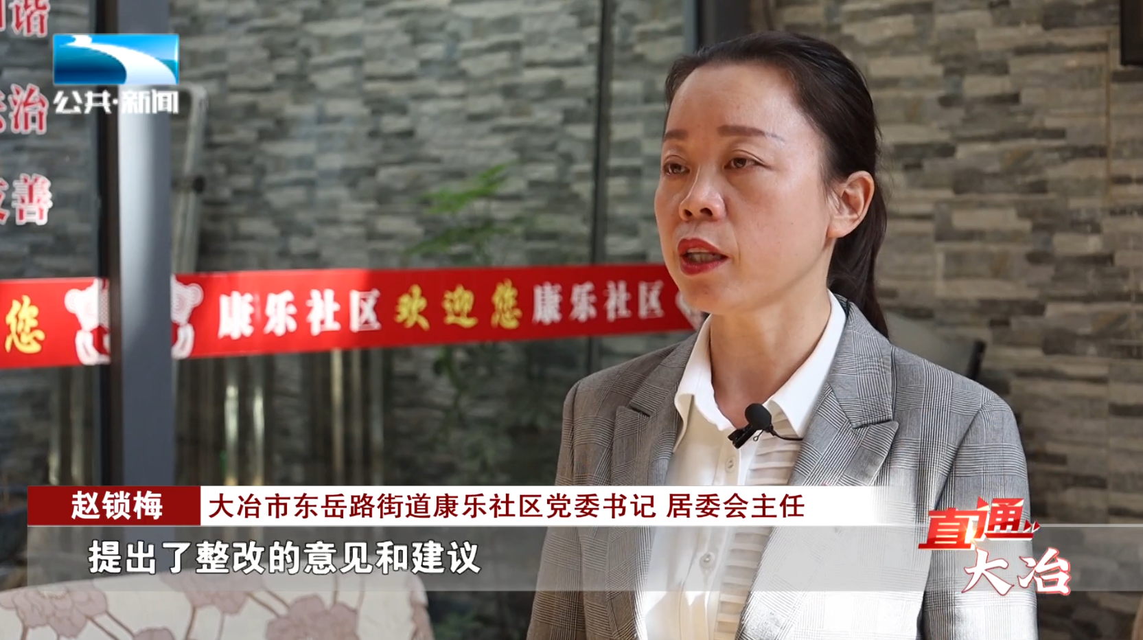 大冶市东岳路街道康乐社区党委书记、居委会主任 赵锁梅:“他在第一时间就跟施工队提出了整改的意见和建议,然后把工程做得更加扎实。”