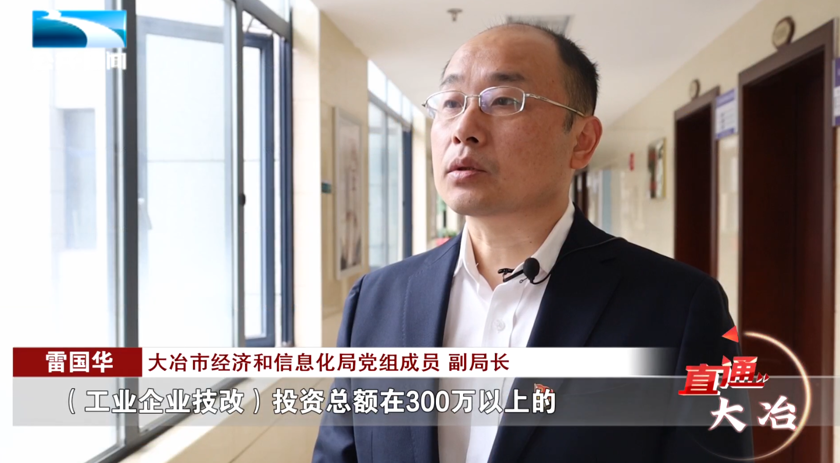 大冶市经济和信息化局党组成员、副局长 雷国华:“工业企业技改投资总额在300万以上的,我们按10%给予奖补,最高不超过200万元。工业技改项目从取得规划设计条件到获取施工许可证,审批时间压缩到10个工作日。”