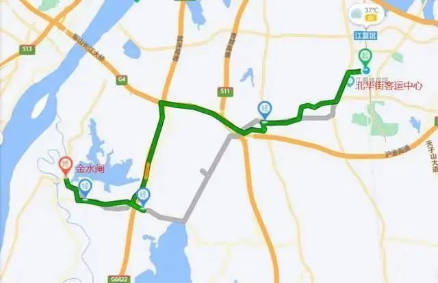 线路走向:北华街、武昌大道、纸金路、武咸公路、范湛线、金康南路、金康北路、金水闸路。