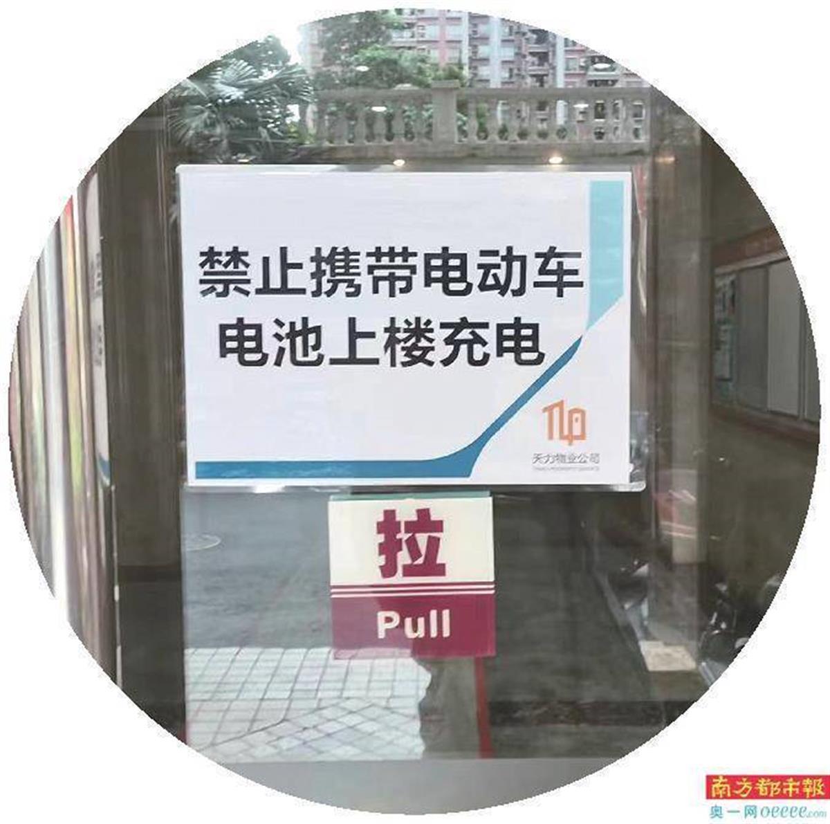由于法律只是规定了电动车不能上楼,有居民就把电池取下来拿进房间充电。有物业坦承,对电池上楼充电现象,“物业无权罚款,只能进行宣传、提醒和劝说,最后(只能)向片区民警反映一下。”