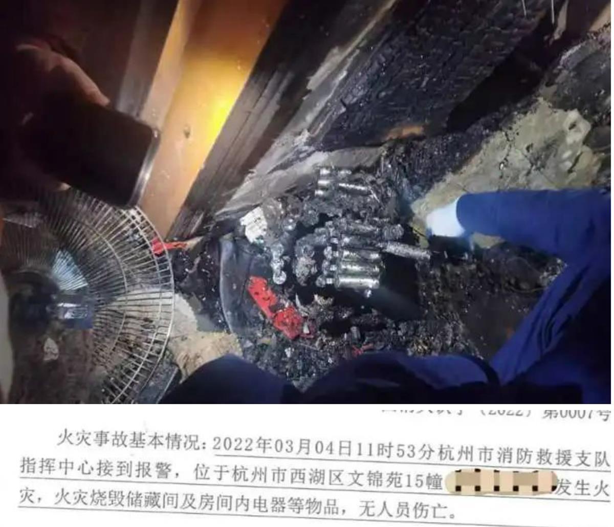 起火原因据称与电池有关(图片来源:钱江晚报)