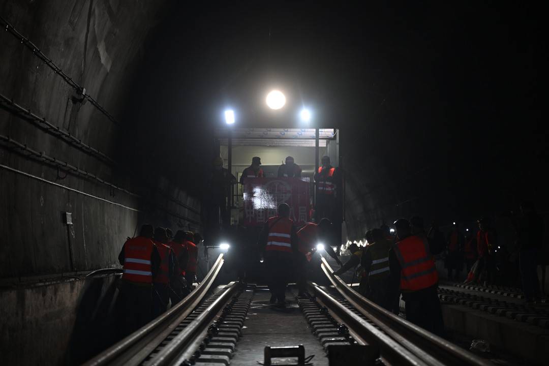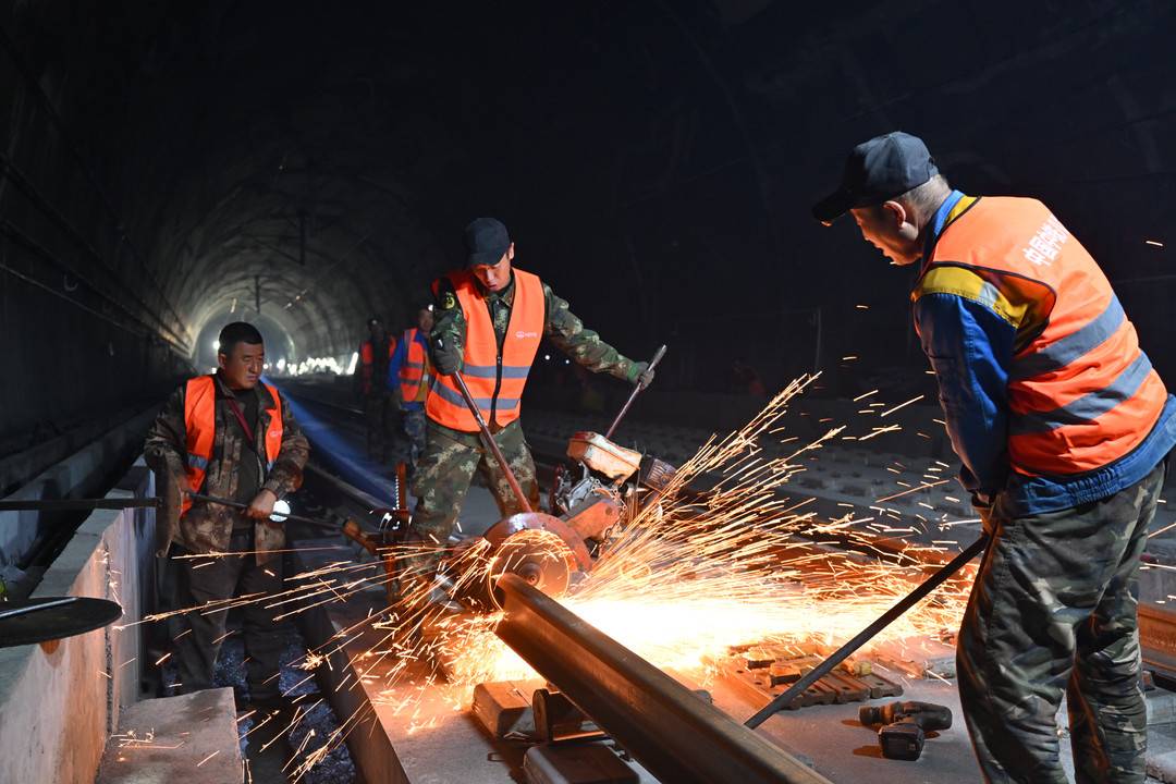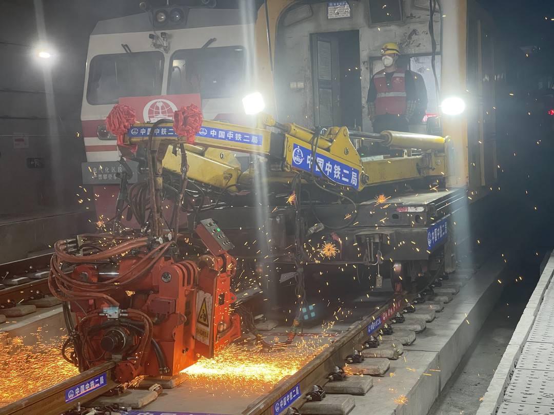 同时,建设单位根据线路特点,还创新研发出了融合北斗技术的施工安全综合指挥调度管理系统,长大隧道可实现通讯定位,对工程线运输、现场施工动态、安全质量及文明施工做到管控无死角,实现有效管控。全线年度铺轨长达450公里,创造了西南山区的铺架纪录。