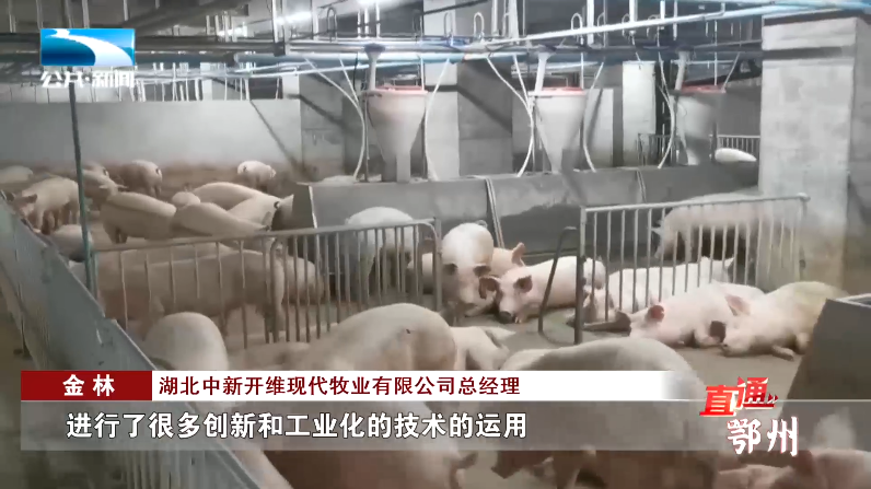 湖北中新开维现代牧业有限公司总经理 金林:“我们中控系统可以精确到3到26层,我都可以监控到猪吃多少饲料、喝多少水、用多少风量,猪群的温度、氨气浓度、湿度,我都可以监控得到,通过我的中央控制系统,能第一时间把指令给到每个楼层,这样就形成了一个标准化的操作。”
