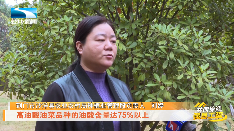 荆门市沙洋县农业农村局种植业管理股负责人 刘婷:“高油酸油菜品种的油酸含量达75%,出油率高于普通菜籽10%,政府和企业对这些品种的油菜籽采取每斤加价0.66元进行收购,农户种植意愿都比较高。”