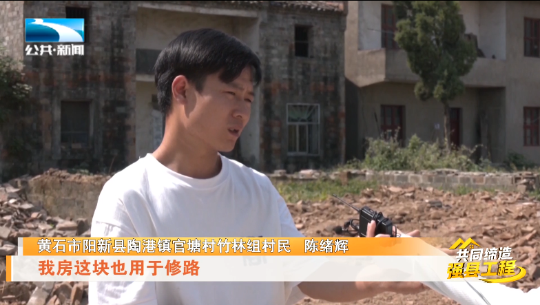 黄石市阳新县陶港镇官塘村竹林组村民 陈绪辉:“我房子这块也用于修路,它地基它就变小了。”
