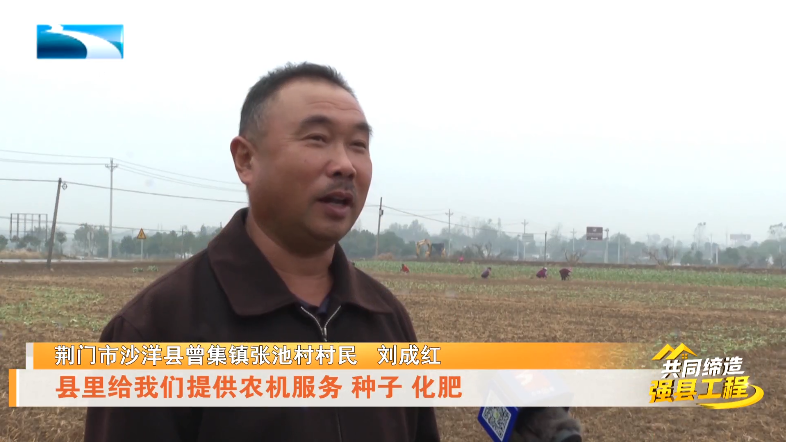 荆门市沙洋县曾集镇张池村村民 刘成红:“县里给我们提供农机服务、种子、化肥,我的50亩田全部种完了。”