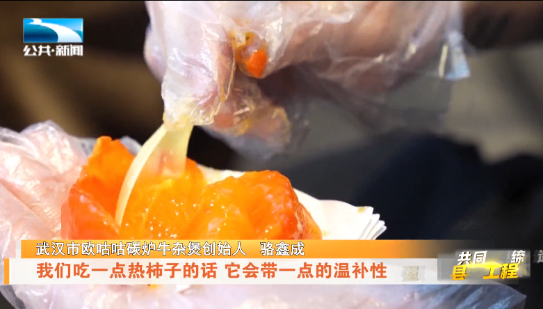 武汉市欧咕咕碳炉牛杂煲创始人 骆鑫成:“现在也是到霜降的季节了,白天晚上昼夜的温差特别大,我们吃一点热柿子的话,它会带一点的温补性,加热不会说让它的维生素减去或流失,它反而会让你的肠胃会更好吸收。”