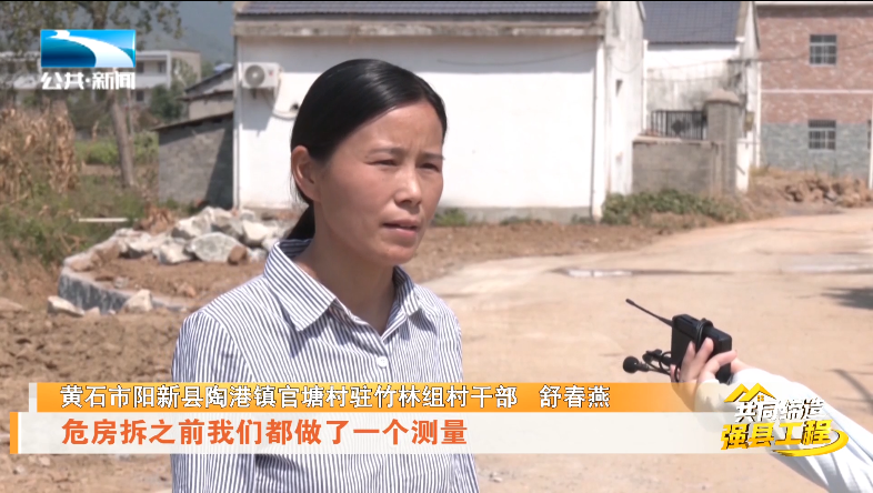黄石市阳新县陶港镇官塘村驻竹林组村干部 舒春燕:“危房拆之前我们都做了一个测量,每家每户的面积都把它测量登记下来,入户核实面积。”