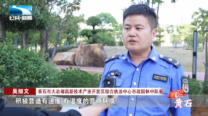 黄石市大冶湖高新技术产业开发区综合执法中心市政园林中队长 吴细文:“积极营造有速度、有温度的营商环境,切实当好企业和群众的金牌‘店小二’。”