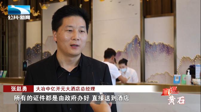 大冶中亿开元大酒店总经理 张赵勇:“所有的证件都是由政府办好,直接送到酒店,在大概半个月的时间之内,让我们能够顺利开业。这个是在我们做酒店行业当中很少碰到的,这个也体现了大冶(湖)高新区的营商环境非常好。”
