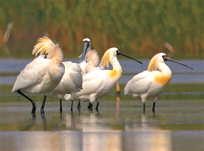 保护成效:20世纪80年代不足300只, 2022年1月中国黑脸琵鹭同步统计越冬种群达到5351只。